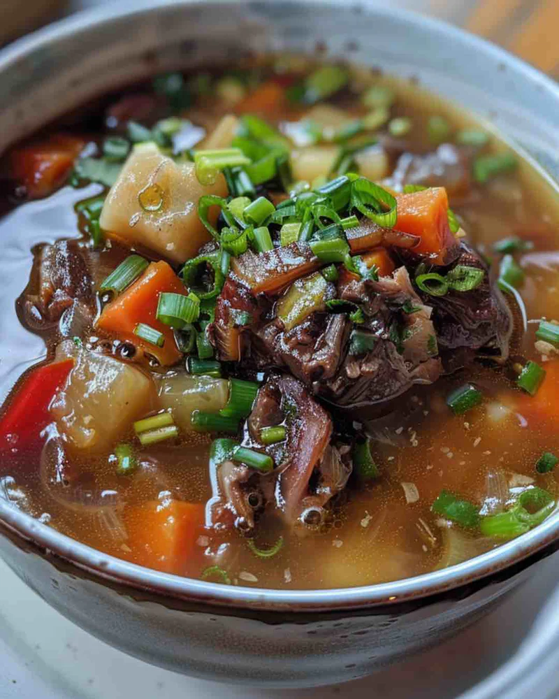 Nigel Slater, who has his own version - Oxtail and onion soup is typical of the 'slow cooking vibe' when he says: