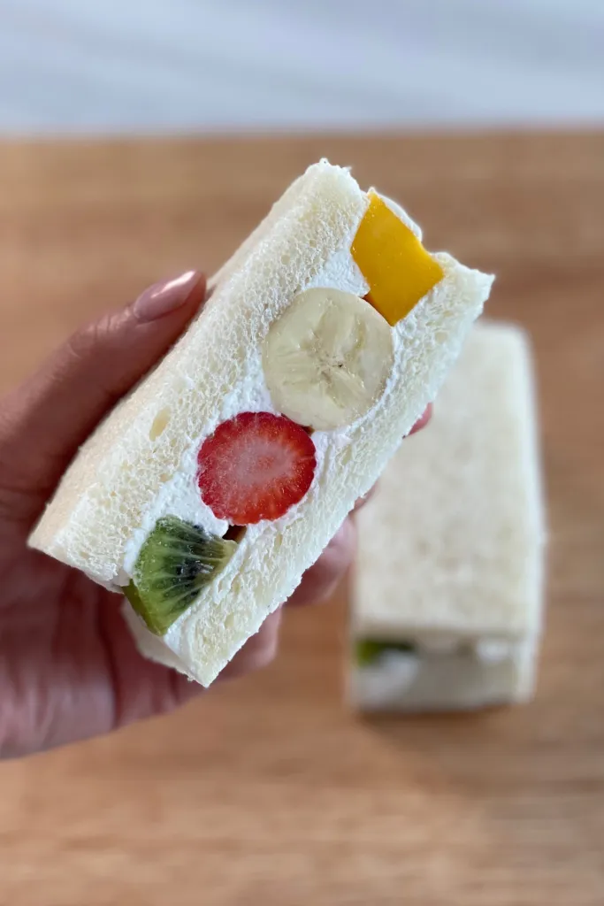 And then I found the rather more complicated: Banana and white chocolate Japanese fruit sandwich from Leina Horii/Food and Wine who gives a somewhat poncy explanation:
