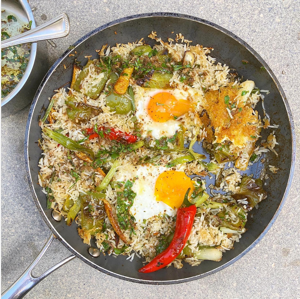 Alternatively you could take the stir-fry approach. Again there are thousands of options out there on the net, but I couldn't resist including this one from Noor Murad, because it's so beautiful. No meats, but eggs will do for the protein - Fried rice, but make it Mediterranean(ish)