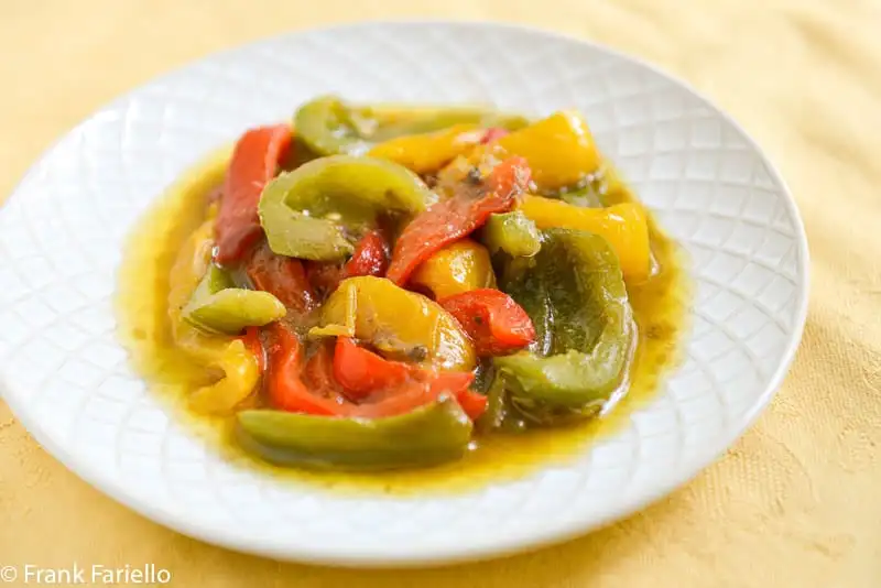 One of the cooks I encountered on this small ramble - Frank Fariello of Memorie di Angelina attaches these words to his recipe for Peperoni alla piemontese, which, as you can see below on the left, are not quite the same thing as what we have now come to accept as a dish with this name: