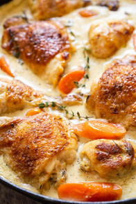 One of the recipes I included in that book was just such an invention. All I had to hand was onions and carrots. I called it Moroccan kind of chicken with carrots and green olives and it turned out so well that I make it every now and then, although it is probably never the same as in spite of having written it down in that cookbook I never refer to the original and just rely on memory. Here's the recipe in case you want to try it some day: Ingredients chicken - whatever cut you like - thighs, breast fillet, drumsticks - your choice; onions, sliced; carrots in chunks; 1/2 or so of preserved lemon; lemon juice; chilli; mint - dried and fresh (or coriander - parsley if you have nothing else); green olives; yoghurt