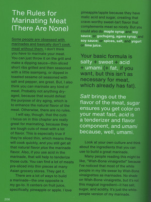 Which is a pity because there is indeed a lot of good stuff in there. The real problem is that he is trying to make cooking wonderful, mostly Asian kind of food, attractive and easy, and yet there is so much good advice in there and presented in such terrible print that you (a) can't absorb it all, and (b) don't really want to battle through it. It's not for those who just want to get to the recipe. And I'm not really one of them, but I found this all very offputting.