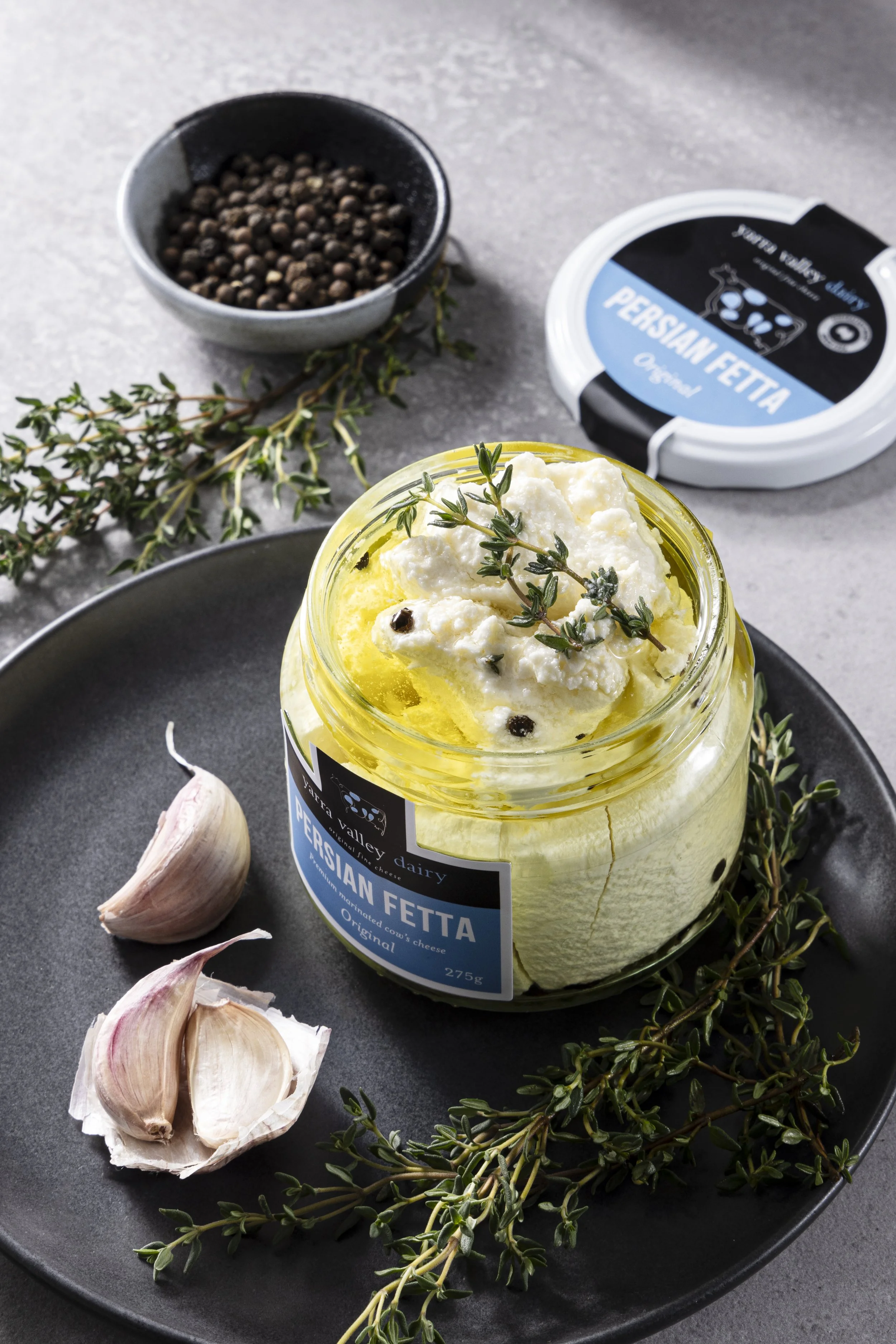 "The cheese is made from cow’s milk, rather than the sheep’s and goat’s milk used for Greek feta. It’s softer and creamier than traditional feta and, although the initial process involves brining, it is not dry salted. The cheese is then marinated in oil, herbs and spices ... their original Persian Fetta marinade included garlic, black peppercorns, fresh thyme, bay leaves and a mix of spices. This was followed by a spicier version containing chilli and another flavoured with dill and chives."