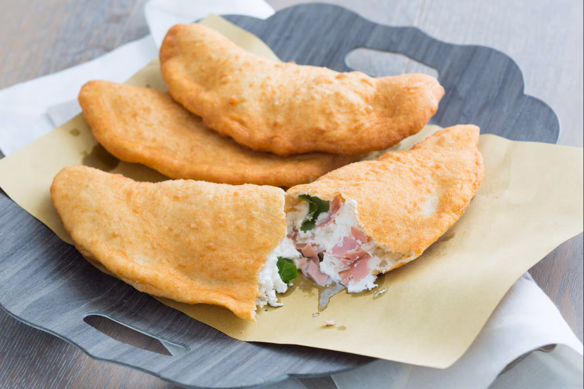 In her introducution to the recipe Ixta mentions that this was sort of inspired by the fried pizza of Naples - which is not the fried pizza that I know of - a proper pizza but fried rather than baked in the oven. This is pizza dough, folded over a filling and then fried. The fillings are various but apparently most often include ricotta. Below are genuine but anonymous street food versions and one made by Lorraine Elliott of Not Quite Nigella - Panzerotti pizza pockets