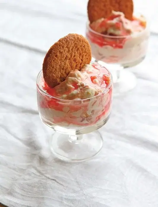 And so he gives us Rhubarb, ginger and cream - a touch of difference with the ginger, although it's an ancient combination - and a modern ginger nut biscuit for the crunch.