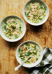 And for winter? Romanian bean, smoked bacon and soured cream soup (The Guardian); Gratin of fresh and smoked salmon, beetroot, potatoes and dill (BBC Good Food); Russian shashliks with rhubarb sauce (BBC Good Food); Chicken, leek and cider pie (BBC Good Food) and Danish roast pork with pickled prunes and sweet cucumber (The Guardian)