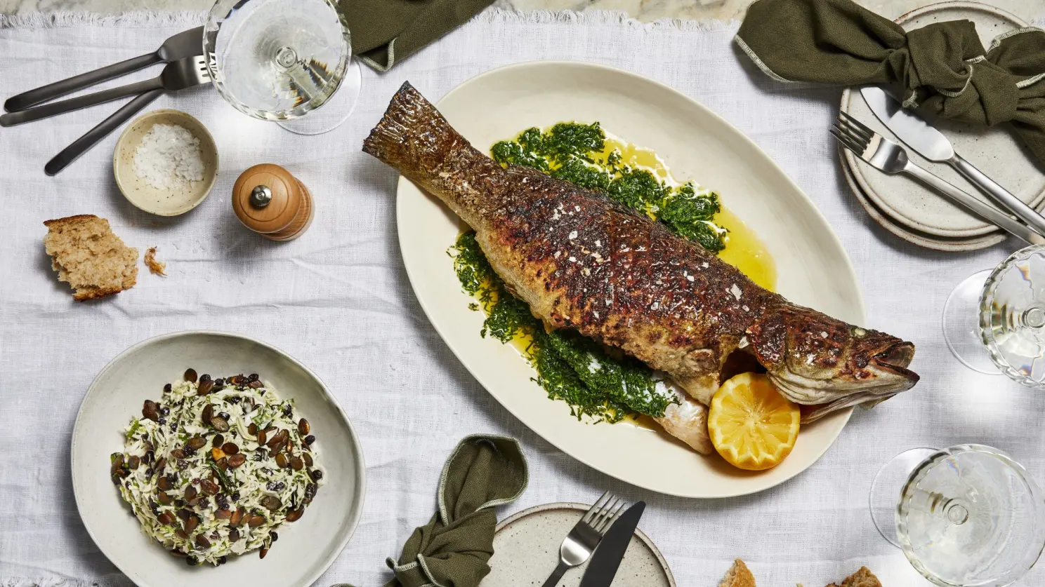 The shop didn't last because of an unsuitable venue he said, but he still uses Murray cod in his other ventures and is a big fan of Aquna Murray Cod on whose website he is featured in a publicity video (interesting) on their website. (Aquna Murray Cod is the product name of Australian Murray Cod.) Below is his Barbecued Murray cod on smoked gremolata with cabbage salad which you can make yourself if you can get hold of some Murray cod. Or you can visit the Aailia restaurant in Sydney where chef Paul Farag will serve you this rather luscious looking Murray cod masgouf. And I'm sure you will find it on other posh restaurant menus elsewhere.