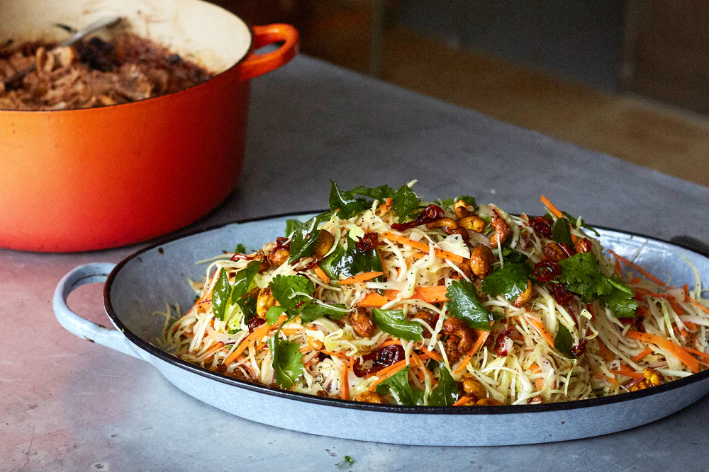 Examples of such salads are: Lime and poppy seed slaw with curry leaf oil - Ottolenghi; Black bean salad with poppy seed vinaigrette - Nik Sharma/The Guardian and Meera Sodha's Grapefruit, avocado, red onion salad with poppy seed dressing - which she adapted from Claire Thompson's Grapefruit, spinach and avocado salad with poppy seed dressing - Claire Thompson