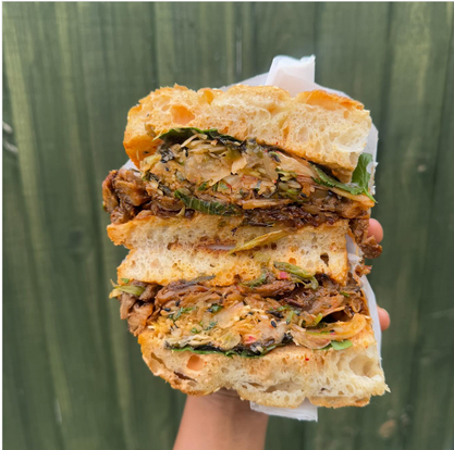 In 2017 she published a cookbook called Plentiful which Nigella, for one, praised to the skies, choosing the dish shown here - Crispy rice salad with crunchy green vegetables and salted cashews to try, which, I have to say, does look pretty tempting - even to a non and ever so slightly anti vegan - like me. Indeed hardly any of her recipes that I have seen, look or sound very vegan. Besides I guess if there is false meat in them - and she mostly tries to avoid such things - then if you are non vegan you can always substitute real meat. Three examples below: Oyster mushroom bulgogi sando; Callaloo gözleme and Sorrel hoisin fried 'chicken' burger