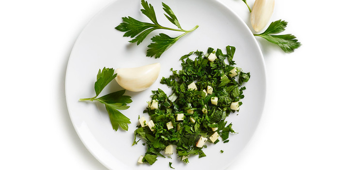"Very finely chopped parsley combined with very finely chopped raw garlic is known in French cuisine as persillade. Used raw, it makes a fine finish to roasted veg or grilled fish. Alternatively, add some persillade to a sauce, a soup or some roasting chicken pieces a few minutes before the end of cooking, for a slightly more mellow infusion of flavour."
