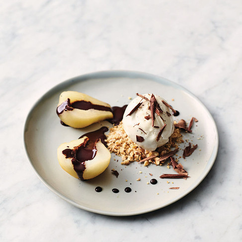 What about pears? I'm sure that somewhere in Robert Carrier's books there is a statement that tinned pears should be regarded as a separate ingredient altogether to fresh pears and none the worse for that either. However, I cannot find the quote, so maybe I dreamt it. Instead let's go with Nigella and Jamie who both match with chocolate, although there are heaps more on the net - mostly cakes, but other things too. Chocolate pear pudding from Nigella on the left; on the right Jamie's Boozy pears and chocolate.